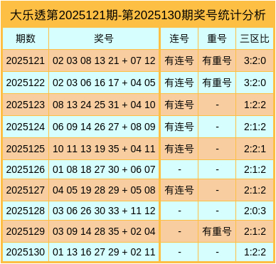 上期奖号无重号,无连号;012路比为:1:3:1,后区开出【2路、2路】号码02、11。